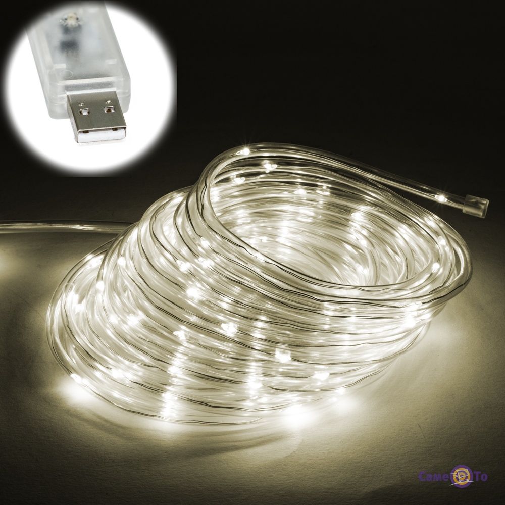 Вулична гірлянда новорічна (теплий білий, дюралайт, 100 LED 9 м, прозора, від USB)