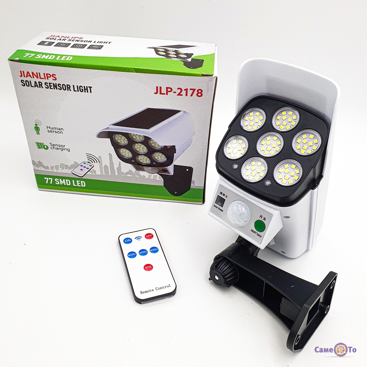 Заряджається світильник на сонячній батареї досить швидко протягом 6 годин. Повної зарядки вистачає на 8:00 роботи в безперервному режимі. Вуличний світильник оснащений датчиком автоматичного включення. При русі людини спрацьовує датчик, який сканує джерело тепла і безперервно може переміщатися в межах діапазону виявлення. Ліхтар може висвітлити площа в радіусі 15 м, має 77 лед діодів, які помістилися в 7 блоках. Стандартний рівень захисту не боїться перепадів температури. Ліхтар на сонячній батареї оснащений трьома режимами роботи, виготовлений в білому кольорі. Поставляється в картонній упаковці разом з інструкцією і пультом управління.