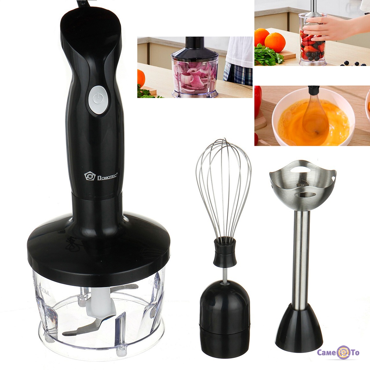 Ваші близькі не люблять, коли в вареному картопляному пюре є грудочки або обожнюють випічку з горіхами? Тоді блендер занурювальний - це якраз те, що вам потрібно. Він стане в нагоді і при приготуванні перших страв, таких як супи-пюре, і під час готування гарячих других страв, і при випіканні десертів. Будь-яка жінка підтвердить, що зробити пишну білкову масу може далеко не кожен міксер. Для Domotec MS-5103 - це не проблема. За лічені хвилини білки перетворяться в білу повітряну суміш.