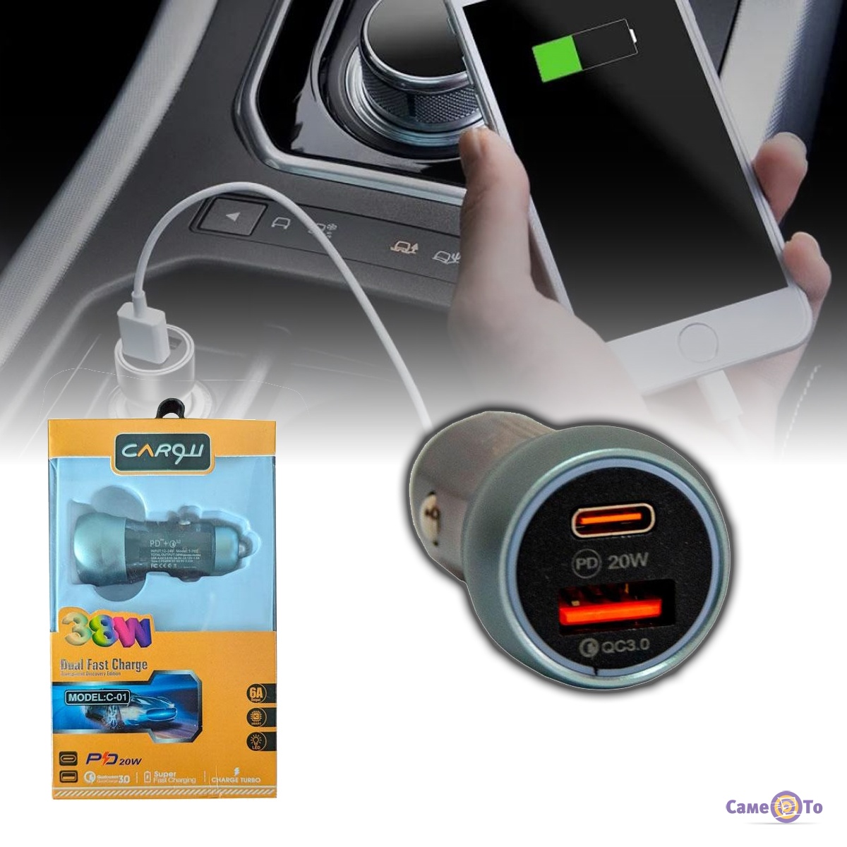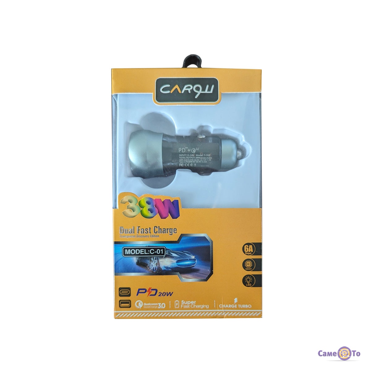 Зарядка для телефона в авто CARQW T-702 38W USB, Type-C - ваш надежный помощник в пути. Этот универсальный автомобильный зарядник обеспечивает быструю и безопасную зарядку ваших устройств, будь то смартфон, планшет или любое другое гаджет с поддержкой USB и Type-C. Мощность 38W позволяет быстро пополнять заряд даже самых энергоемких устройств, экономя ваше время в дороге.