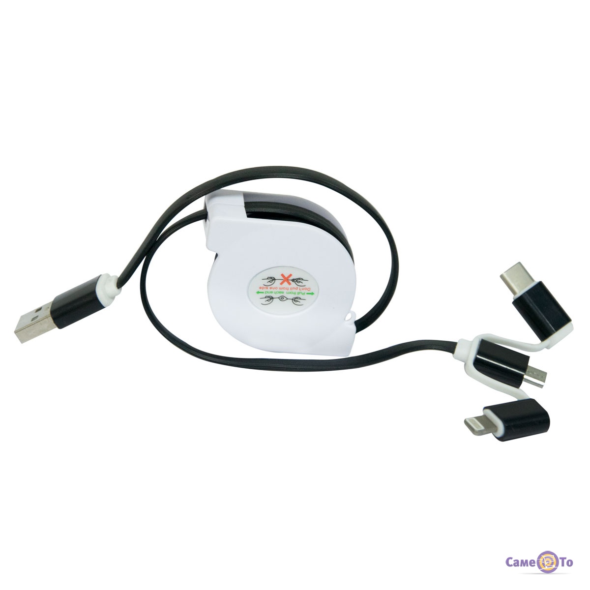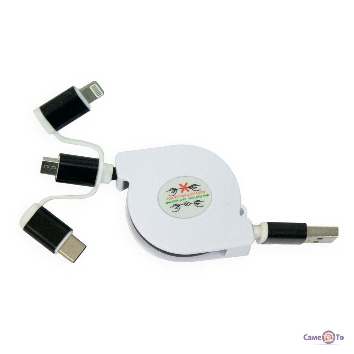 Зарядний кабель 3в1 для телефону "Равлик pull push" Type-C/MicroUSB/Lightning