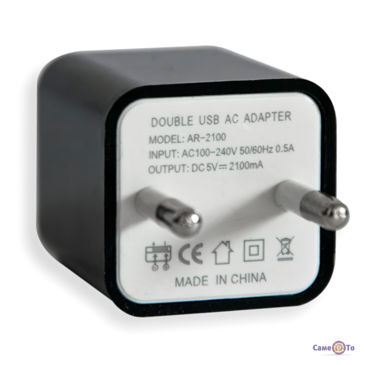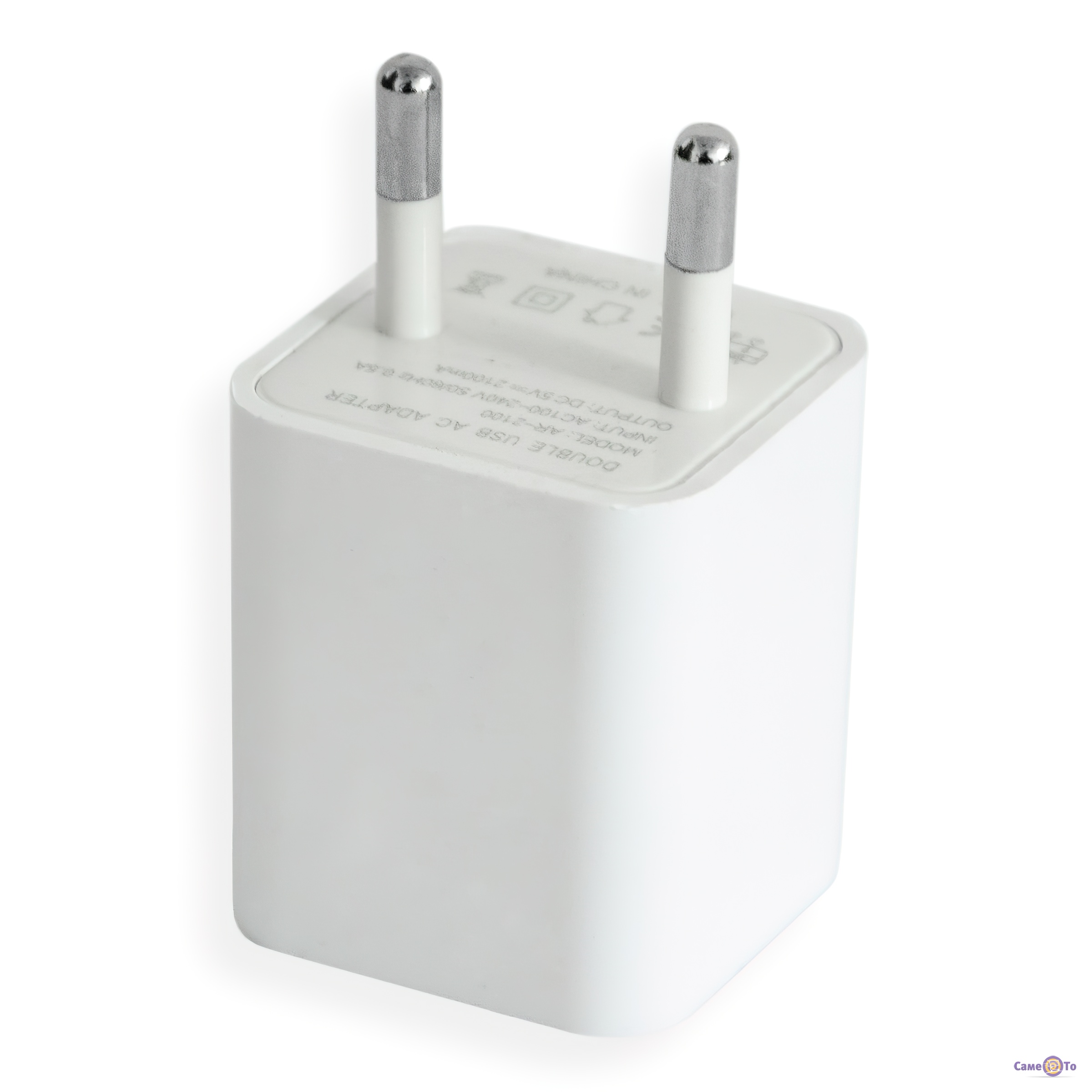 Блок для зарядки телефона "AR-2100" 2xUSB 2.1A обеспечивает быструю зарядку вашего смартфона и защиту от перегрузки, короткого замыкания и перегрева. Легко использовать: вставьте его в розетку и подключите свой телефон через USB-кабель.