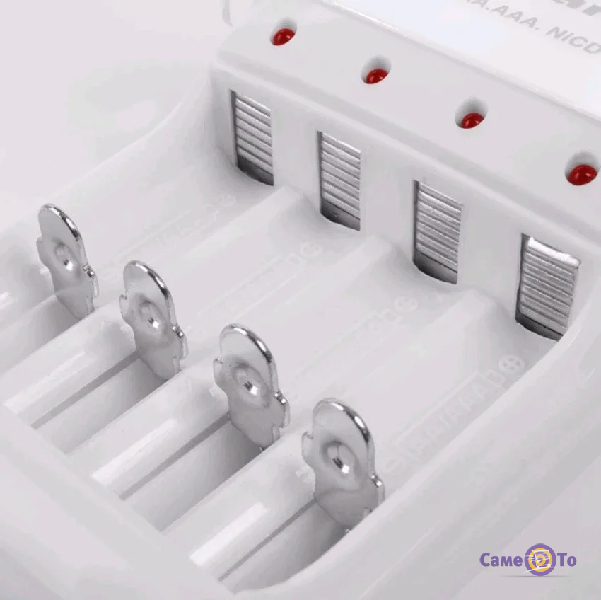 Этот комплект быстро зарядит любой прибор в удобном для Вас месте! Данное зарядное может заряжать сразу в одно время четыре батареи. После зарядки прибор просто поддерживает полный заряд аккумулятора. Кроме того, устройство оснащено автоматическим контролем подаваемого тока, что защитит батареи от перегрузки, замыкания или перегревания, и индикатором, показывающим уровень зарядки.
