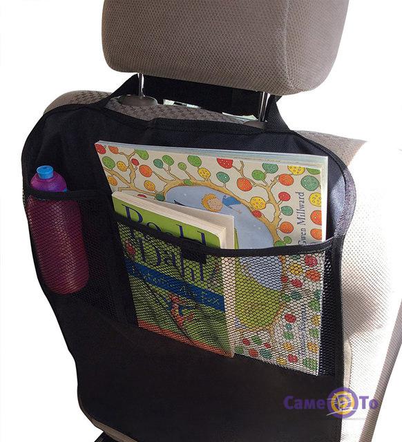 Чехол на спинку переднего сиденья имеет большие вместительные карманы, поэтому он не только защищает сиденье от загрязнений, возникновения пятен, разрыва ткани, но и служит удобным органайзером для хранения различных предметов, которые могут Вам пригодиться в дороге: