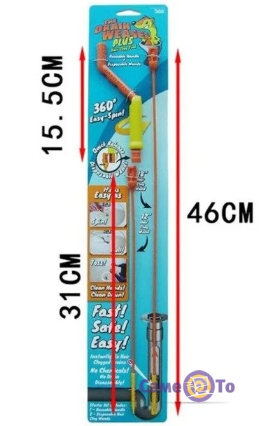 Зручний у використанні, з відмінним функціоналом, складається з двох гнучких пластикових тросів різної довжини і ручки. Устаткування для прочищення каналізації має так само щіточки на наконечниках, що дозволяє швидко і ефективно витягти сміття і запобігти подальшому засміченню. Інструмент для прочистки засмічень компактний і легкий по вазі. Дуже гнучкий, його можна обертати на 360 градусів. Не складе труднощів прочистити засмічення, навіть якщо вузький діаметр труби. Зібрати Drain Weasel Plus буде не складно. Відмінна альтернатива хімічним засобам, які завдають згубної шкоди трубам.