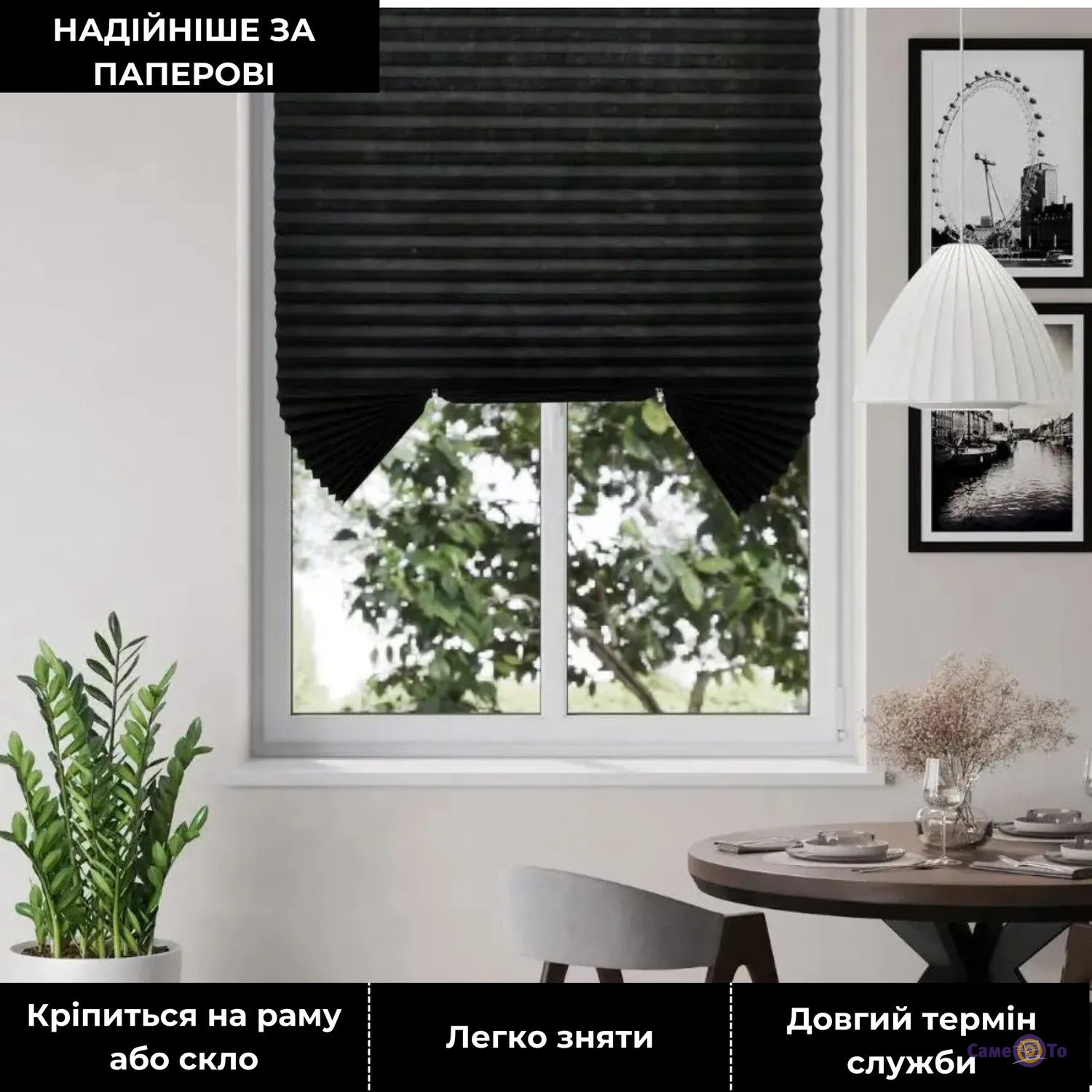 Ці плісовані сонцезахисні жалюзі не лише захищають від сонячних променів, але й надають інтер'єру стильного та сучасного вигляду. Зручні в установці завдяки липучкам вони легко кріпляться на будь-які вікна. Підходять для кухні, балкона, спальні, альтанки та інших приміщень. Жалюзі пліссе забезпечать комфорт та затишок у вашому будинку, ефективно захищаючи від світла та сторонніх очей.