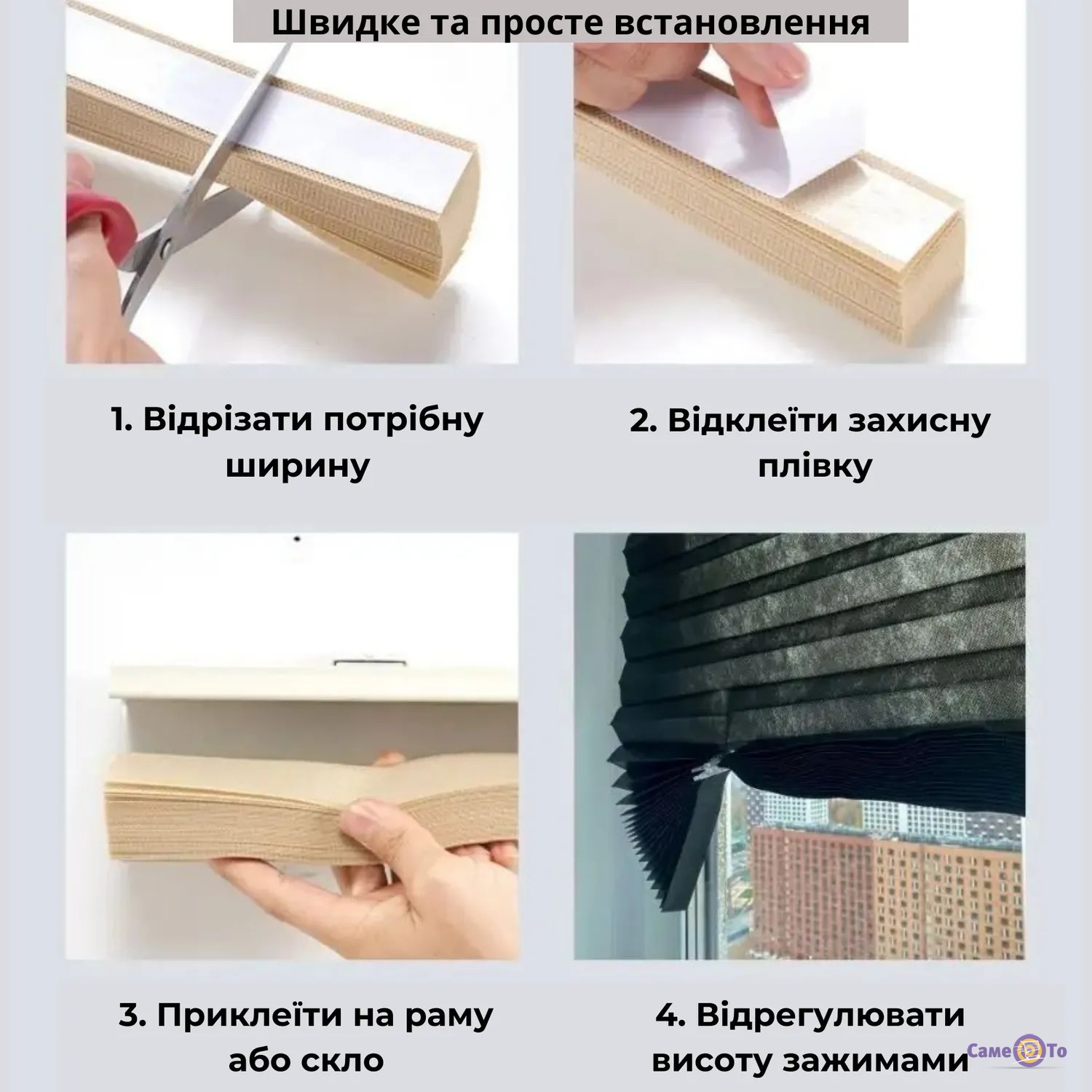 Ці плісовані сонцезахисні жалюзі не лише захищають від сонячних променів, але й надають інтер'єру стильного та сучасного вигляду. Зручні в установці завдяки липучкам вони легко кріпляться на будь-які вікна. Підходять для кухні, балкона, спальні, альтанки та інших приміщень. Жалюзі пліссе забезпечать комфорт та затишок у вашому будинку, ефективно захищаючи від світла та сторонніх очей.