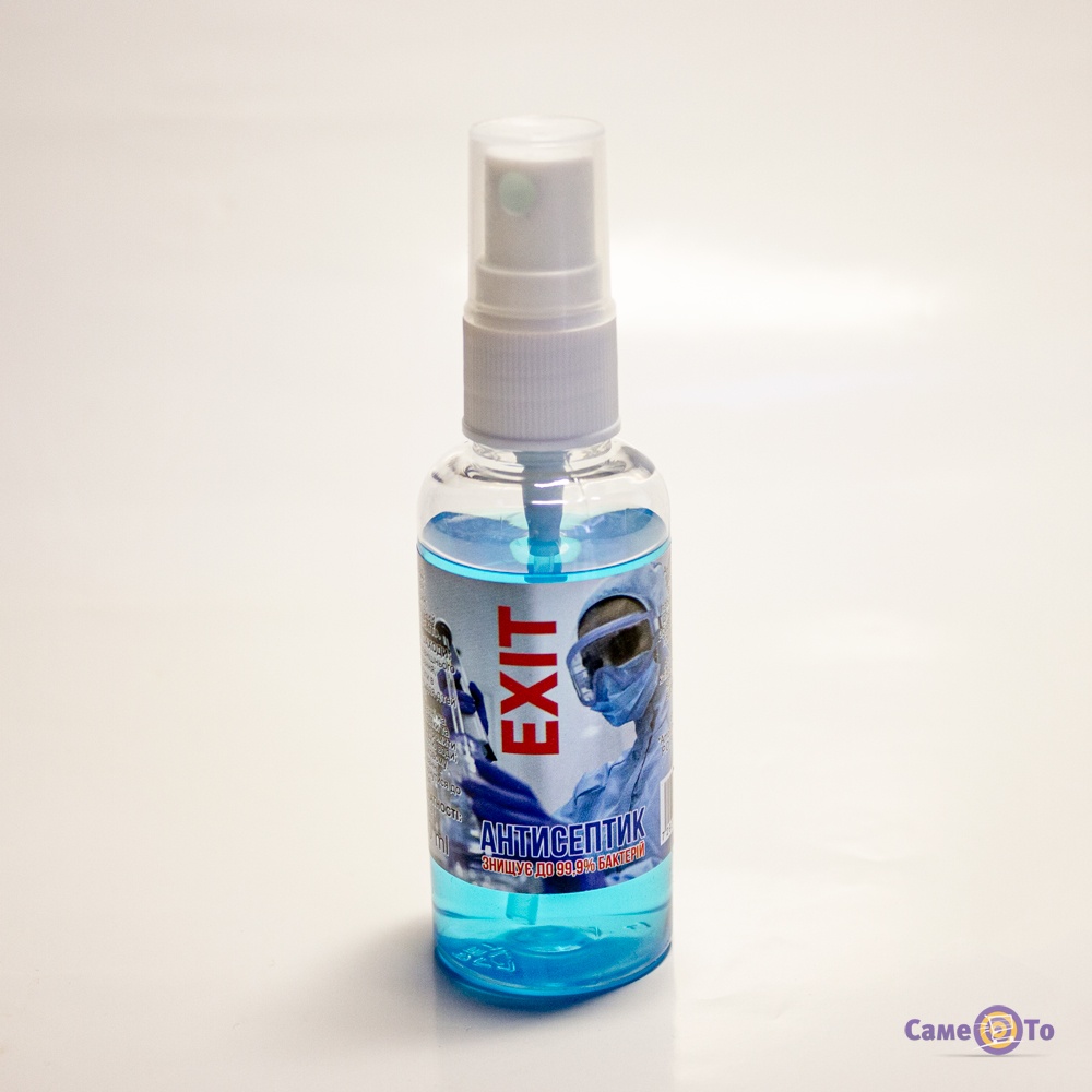 Быстрый ритм жизни не должен мешать вашему здоровью! Универсальное антисептическое средство Exit для обработки рук подойдет для любого типа кожи. Изготовлением этого средства занималась израильская лаборатория, которая специализируется на вирусах и болезнях. Данное средство представляет собой флакон с распылителем. Подходит для индивидуальной обработки рук и поверхностей предметов. Этот антисептик подойдет как для медицинского работника, так и для ежедневного применения каждому. Объем этого средства составляет 50 мл - его легко положить в карман или сумку. В состав спрея входит: этилен, глицерин и специальный фирменный комплекс Exit. Этанол, который входит в состав помогает быстрее обеззаразить ладони. Глицерин в составе не дает коже сохнуть, не сдерживает влагу и не вызывает раздражения. Подходит для частого применения. Антисептик был клинически протестирован на многих видах вирусов и бактерий. Чтобы его применить, нужно два раза нажать на распылитель и тщательно сделать обработку рук. Хранить в темном месте. Срок годности составляет 5 лет с даты производства. Рекомендуется для применения всей семьей, особенно в транспорте и в многолюдных местах. Благодаря проверенному качеству средства, можно не сомневаться в качественной обработке, которая убивает до 99,9% всех микробов. Не впитывается в кожу, подходит для применения даже детям и беременным женщинам. При использовании такого дезинфектора для рук, можно не переживать о том, что ваш организм перестанет бороться с микробами, которые оседают на руках. Средство не вызывает привыкания.