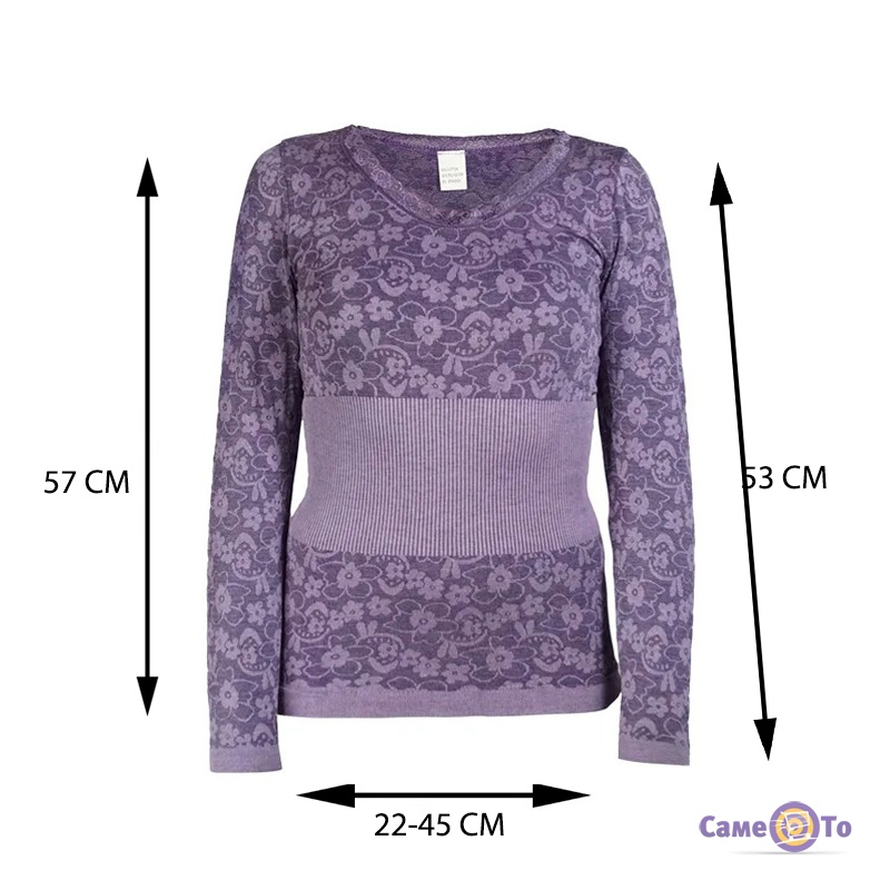 Крім інших заслуг термобілизни, воно має універсальну форму і розмір, що підходить для всіх жінок з 44 по 52 розміру. Термобілизна без проблем пристосується до будь-якої зміни вашої фігури.